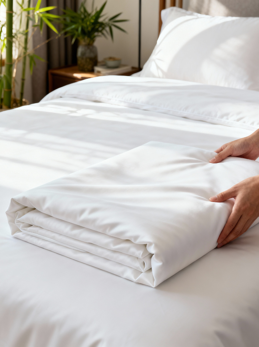 Fluff Bamboo-Bettlaken sind pflegeleichte und praktische Bettwäsche. Sie sind knitterfrei, langlebig und werden mit jeder Wäsche weicher. Natürliche antimikrobielle und feuchtigkeitsableitende Eigenschaften machen sie schmutzabweisend und schnell trocknend. Mit Fluff-Bambuslaken ist die Pflege Ihrer Bettwäsche problemlos.