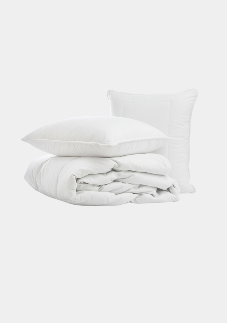 Lieferumfang: 1 Spannbetttuch, 1 Bettlaken, 2 Kissenbezüge, 1 Bettbezug, 1 Bettdeckeneinlage, 2 Kissen, 1 Decke, 1 Matratzenschoner.